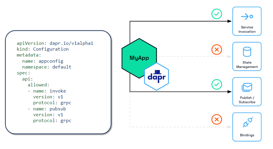 Read How-To: Selectively enable Dapr APIs on the Dapr sidecar for more details.